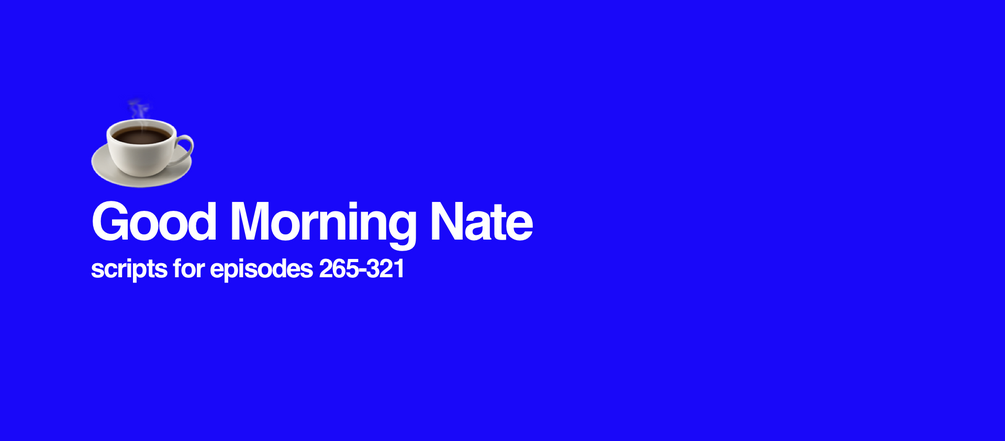 I'm Nate, and these are the scripts I wrote for Good Morning Nate episodes 265 to 321. If you're looking for some quick productivity tips, or faith-based inspiration, hopefully these 43 pages help you out.